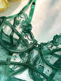 Verleina Koronkowy Zielony Komplet Bielizny | Luksusowa Seksowna Bielizna z Haftem